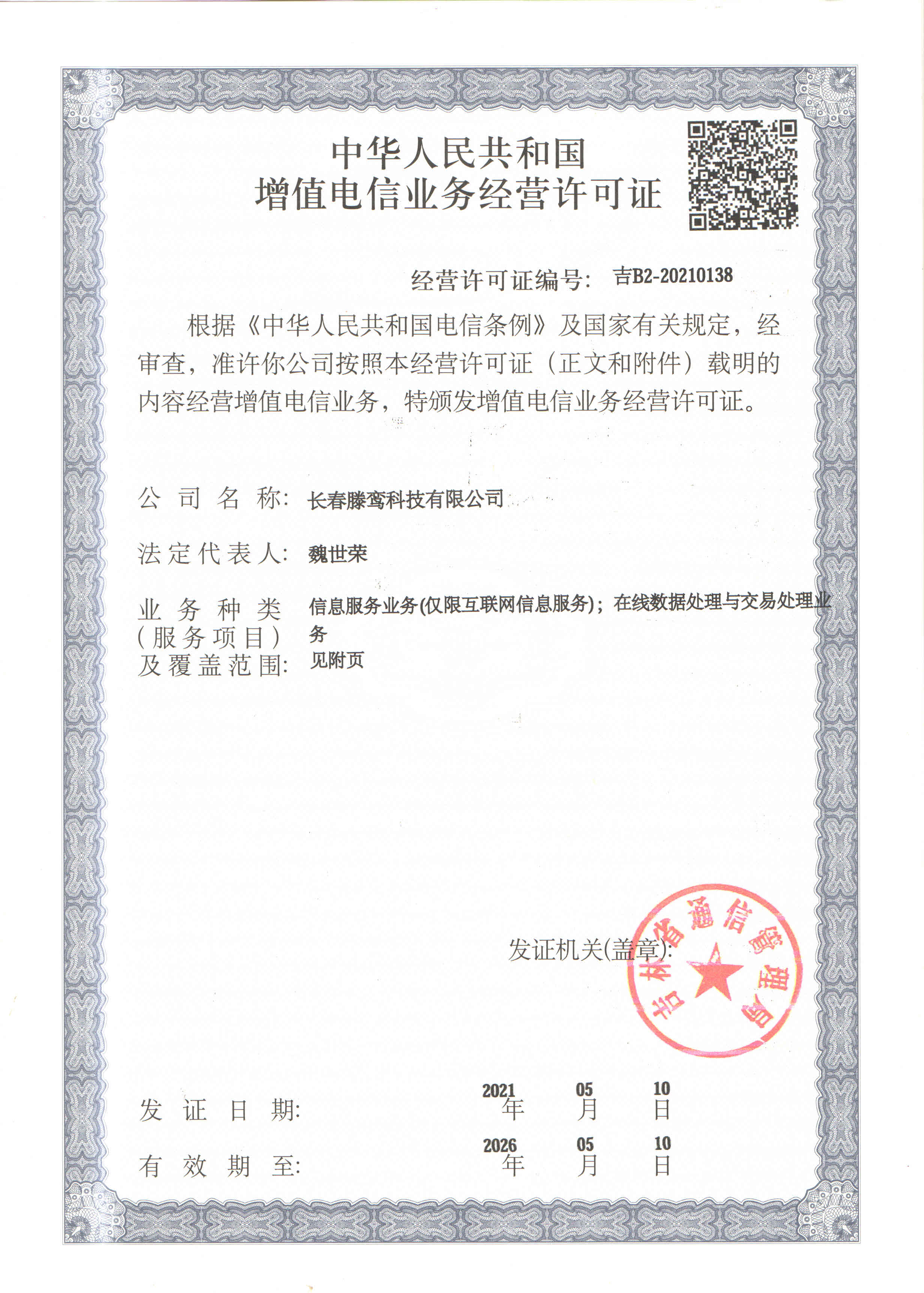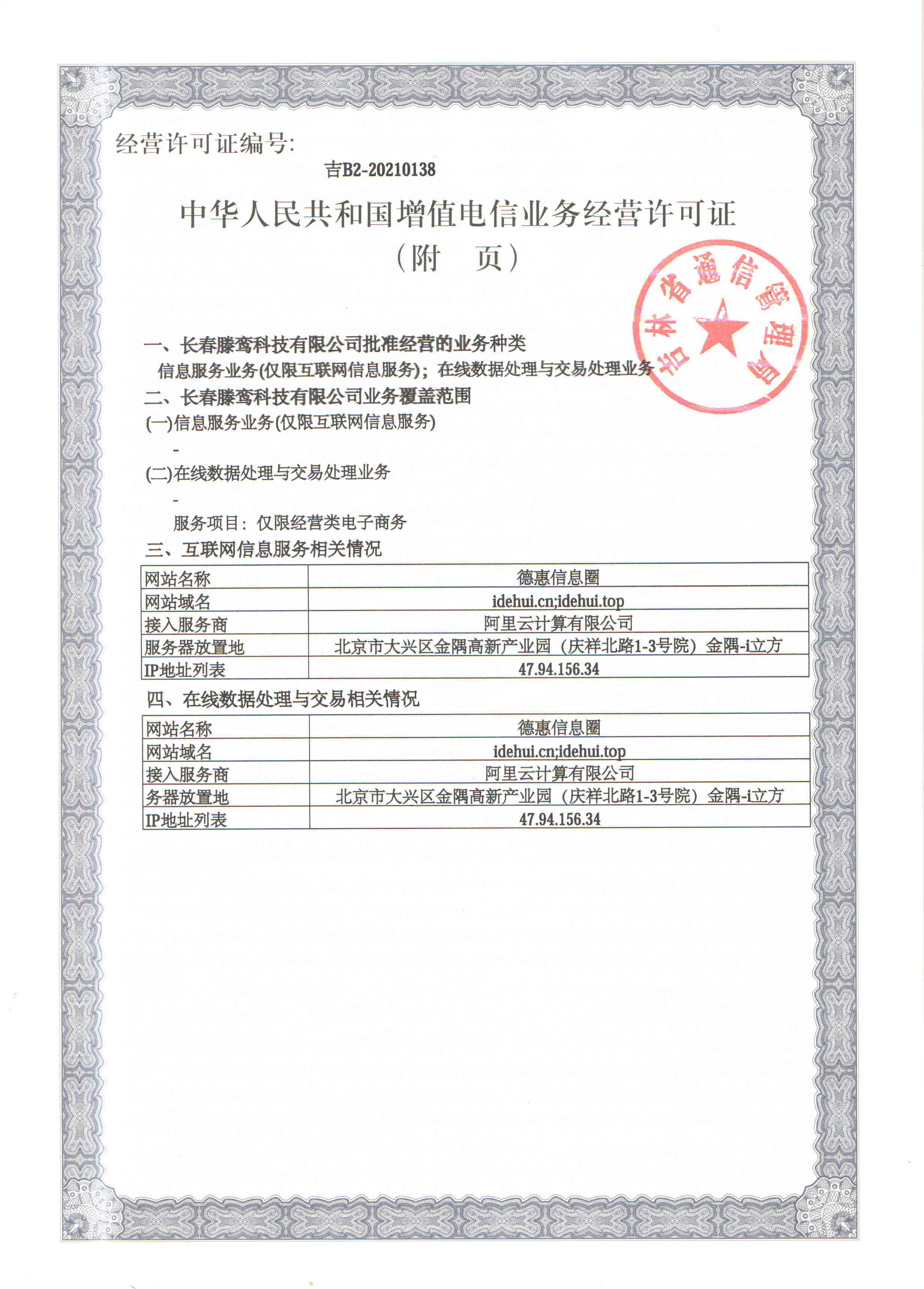 增值电信业务经营许可证